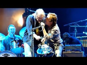 (Γέλια) Ξέρεις φίλε, αυτό ήταν ένα από αυτό τα πράγματα που σου συμβαίνουν μια φορά στη διάρκεια της ζωής σου. Μια στιγμή, που όμως ήταν τόσο αυθόρμητη. Ήταν μια από τις πιο ξεχωριστές στιγμές και εμπειρίες που είχα σε ολόκληρη τη ζωή μου. Μακάρι η οικογένειά μου να μπορούσε να είναι εκεί για να δουν τι συνέβη. Ήταν πραγματικά, πραγματικά ωραία και ξέρεις, μουσικά ήταν κάτι συναρπαστικό, λόγω του ότι ο Paul δεν είχε ξαναπαίξει ποτέ νωρίτερα σε συναυλία αυτό το τραγούδι, το “A Day in the Life”. Το ζήτημα είναι ότι αυτό το τραγούδι προσπάθησε ο ίδιος να το κάνει με το συγκρότημά του και για οποιοδήποτε λόγο, αυτό δεν συνέβη. Το ήξερε καλά ότι παίζαμε αυτό το τραγούδι για το μεγαλύτερο διάστημα εκείνο το καλοκαίρι. Ξέρεις τι, θυμάμαι την ημέρα που ο Neil και η μπάντα, συζητούσαμε στη Φλωρεντία, κατά την προετοιμασία του πρώτο σκέλους της περιοδείας που άρχιζε τον Ιούλιο. Και ο Neil είπε: «Ακούω συνέχεια το “A Day in the Life”. Δεν μπορώ να το βγάλω από το κεφάλι μου». Καθόμασταν σε ένα καναπέ σε ένα δωμάτιο του ξενοδοχείου και αρχίσαμε να ακούμε το “A Day in the Life” και απλά τον κοίταξα και μου είπε ότι «Φίλε, πρέπει να αρπάξουμε την ευκαιρία να το κάνουμε αυτό. Πρέπει να δούμε αν θα μπορούσε αυτό το τραγούδι να παιχτεί». Και αρχίσαμε να δουλεύουμε πάνω σ’ αυτό, και ο Paul έμαθε ότι το κάναμε αυτό, ο ίδιος και ο Neil είναι φίλοι εξάλλου -και νομίζω ότι ο Paul ήρθε μόνο από περιέργεια να δει τον Neil να παίζει αυτό το τραγούδι στο Hard Rock Carling Festival και αυτός πήδηξε πάνω στη σκηνή σ’ αυτό το τραγούδι, λίγο πριν από φωνητικό μέρος του, το οποίο ήταν το μέρος του τραγουδιού που έγραψε. Ήμασταν στη σκηνή και 50.000 άνθρωποι τρελάθηκαν εντελώς, συμπεριλαμβανομένου του Paul. Ο Paul εμφανίστηκε από το πουθενά κατά κάποιον τρόπο. Ήταν πολύ συναισθηματικό για αυτόν. Ήμασταν συγκλονισμένοι με τον πιο όμορφο τρόπο. Ήταν απλά μια γνήσια μουσική στιγμή. Ήταν ένα τόσο ξεχωριστό πράγμα.